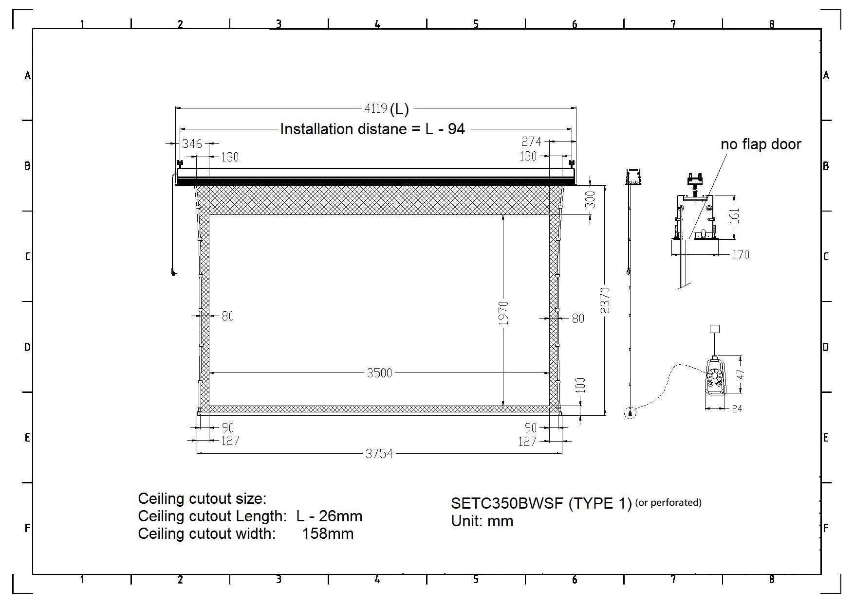 Sapphire In Ceiling Tab Tension Screen Woven 16:9 Format Viewing Area 3500mm x 1970mm Approx Case Dimensions Not Including Surround L 4119mm x H 161mm x D 170mm