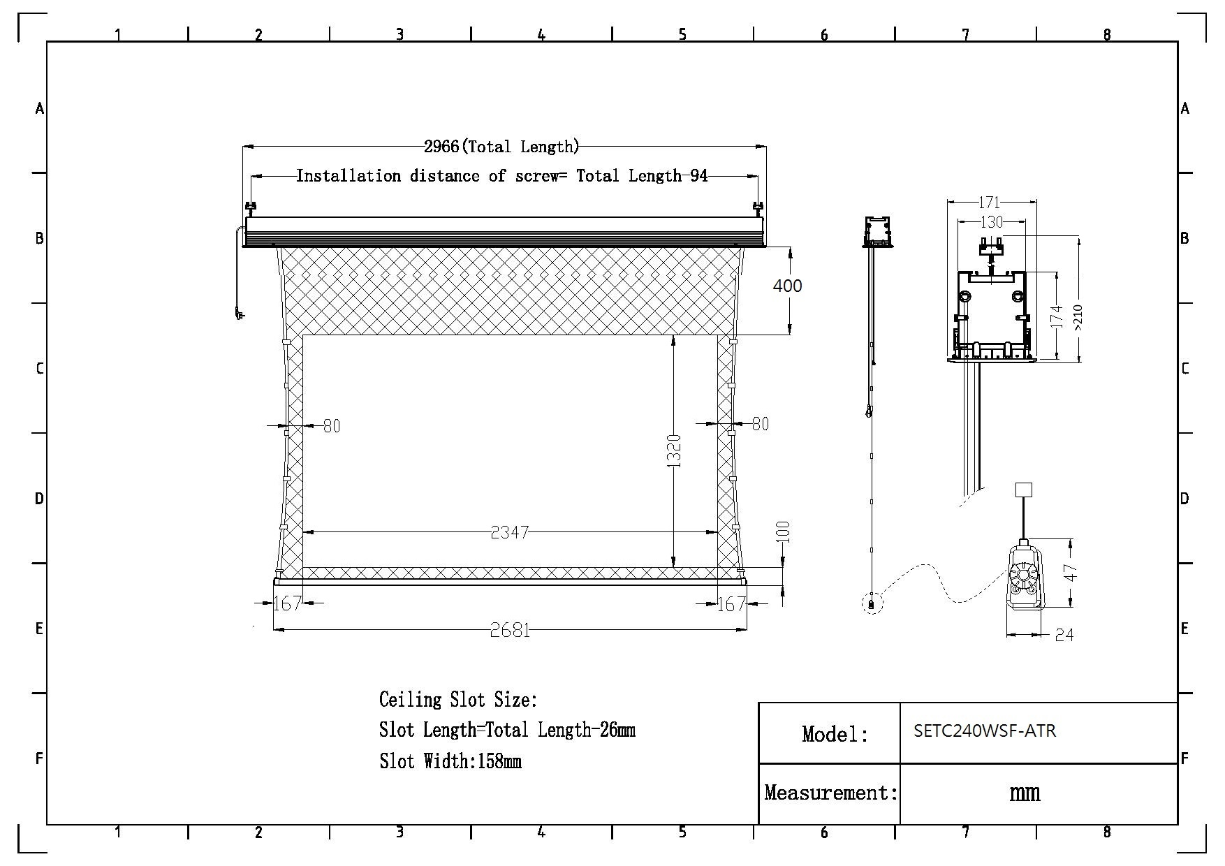 Sapphire 106" In Ceiling Tab Tension Woven Acoustic Screen 16:9 Format Viewing Area 2340mm x 1320mm Approx Case Dimensions Not Including Surround L 2935mm x H 210mm x D 155mm
